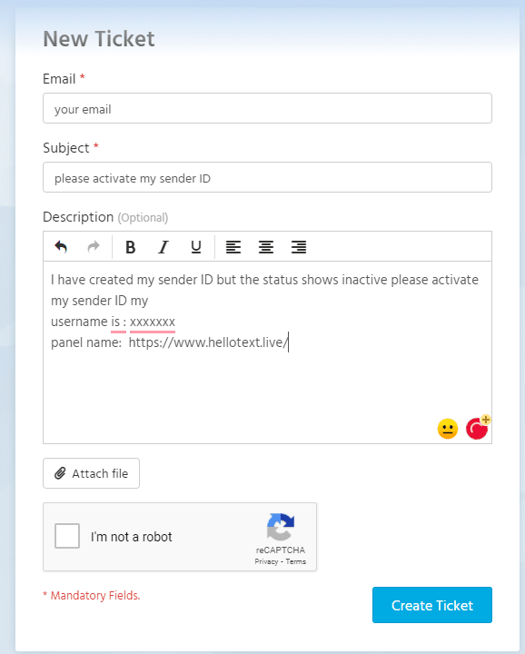 if you are created sender ID and status show inactive then click here and raise the ticket