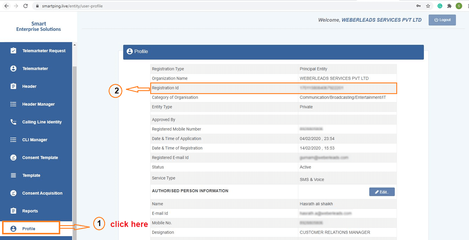 Smart Ping fined your PE ID or Entity id or Registration ID: