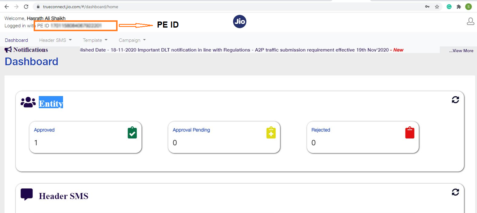 First you have to login On JIO platform after login On top left corner you can see your PE ID or Entity id.
