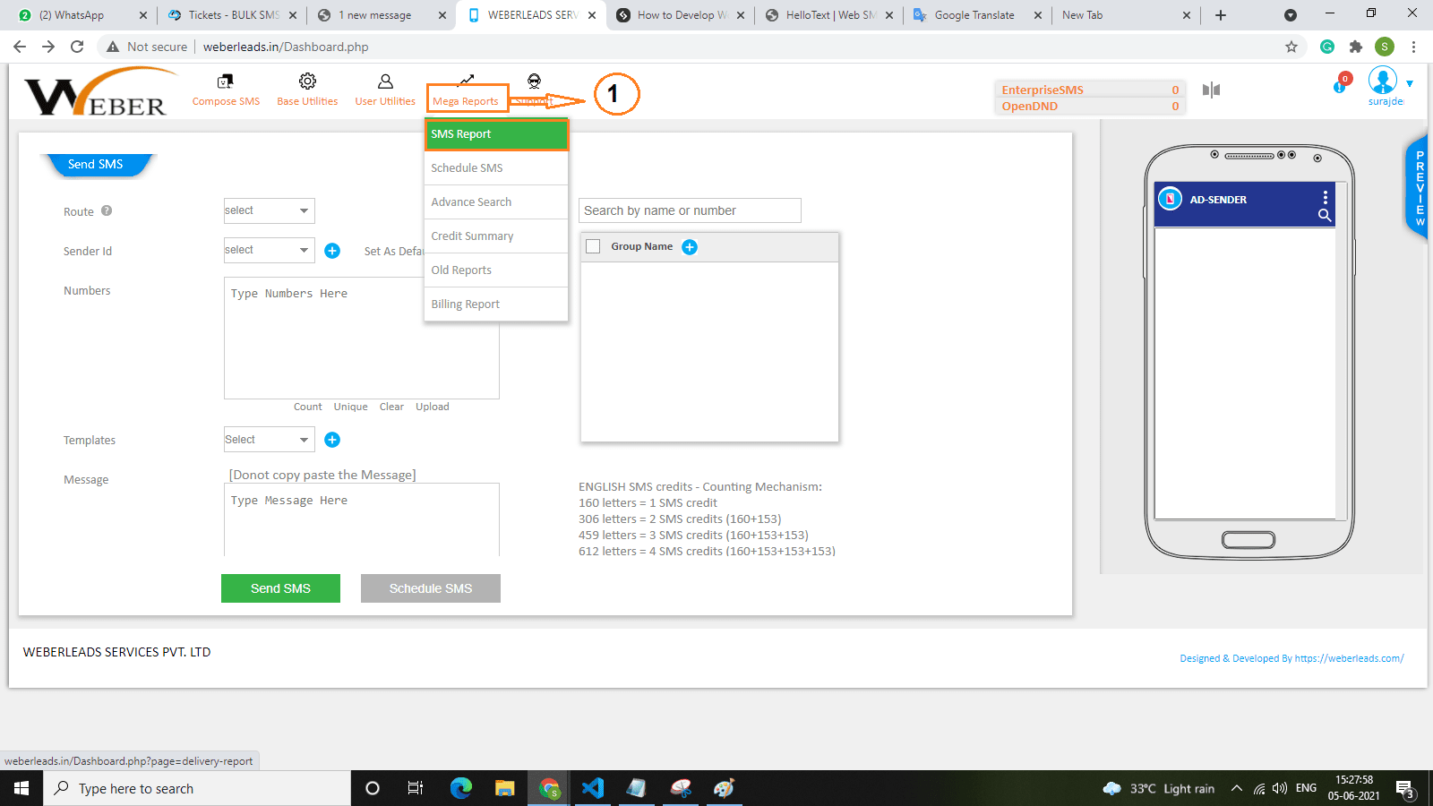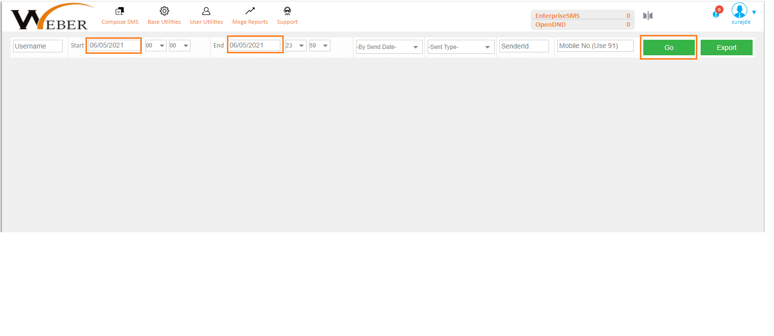 1. To check the SMS delivery reports click on Mega Reports then click on SMS Report