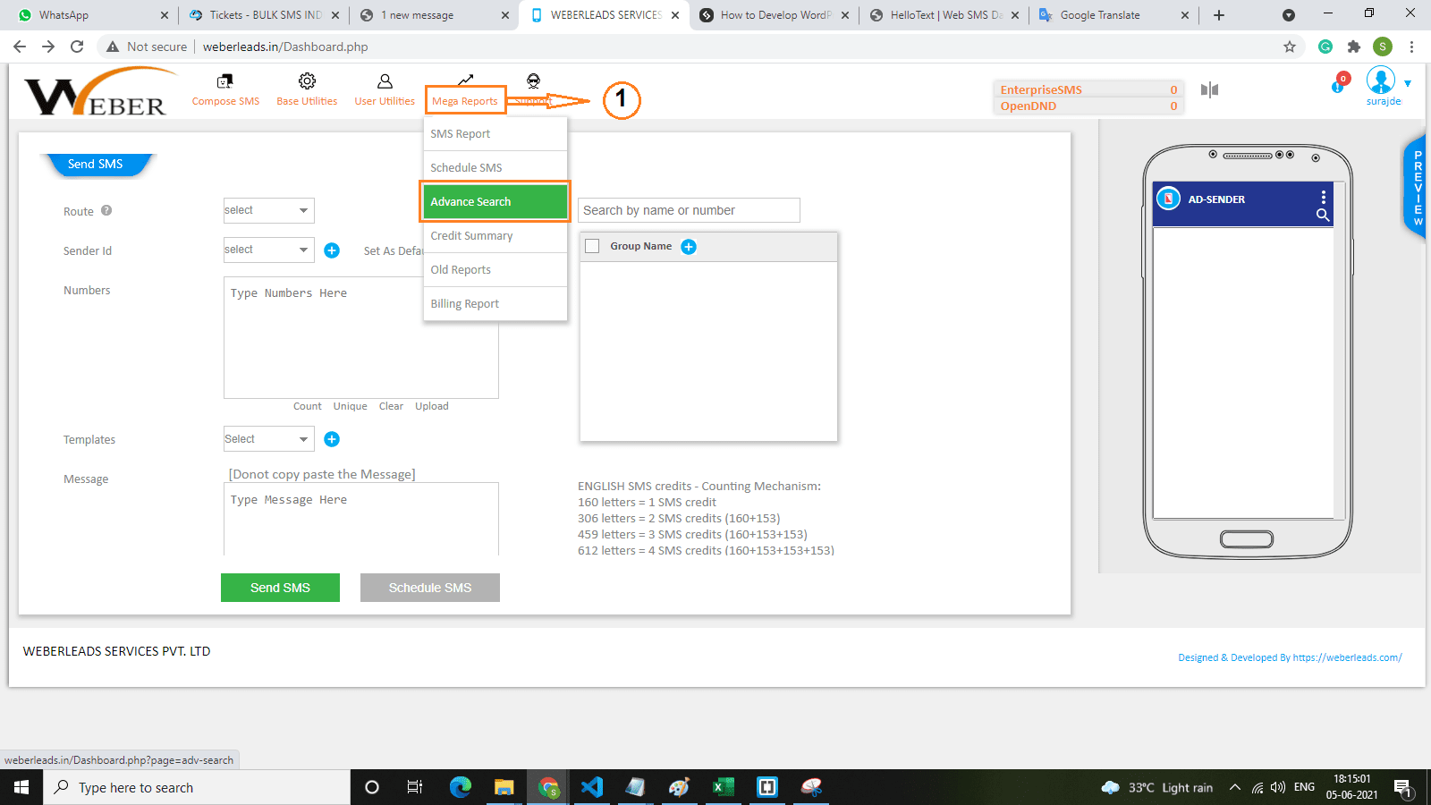 6. Before you send an SMS you need to check sender ID and PE ID or registration ID. when you create the template you have to check template ID template name and message content without any extra space you have to put content on SMS panel