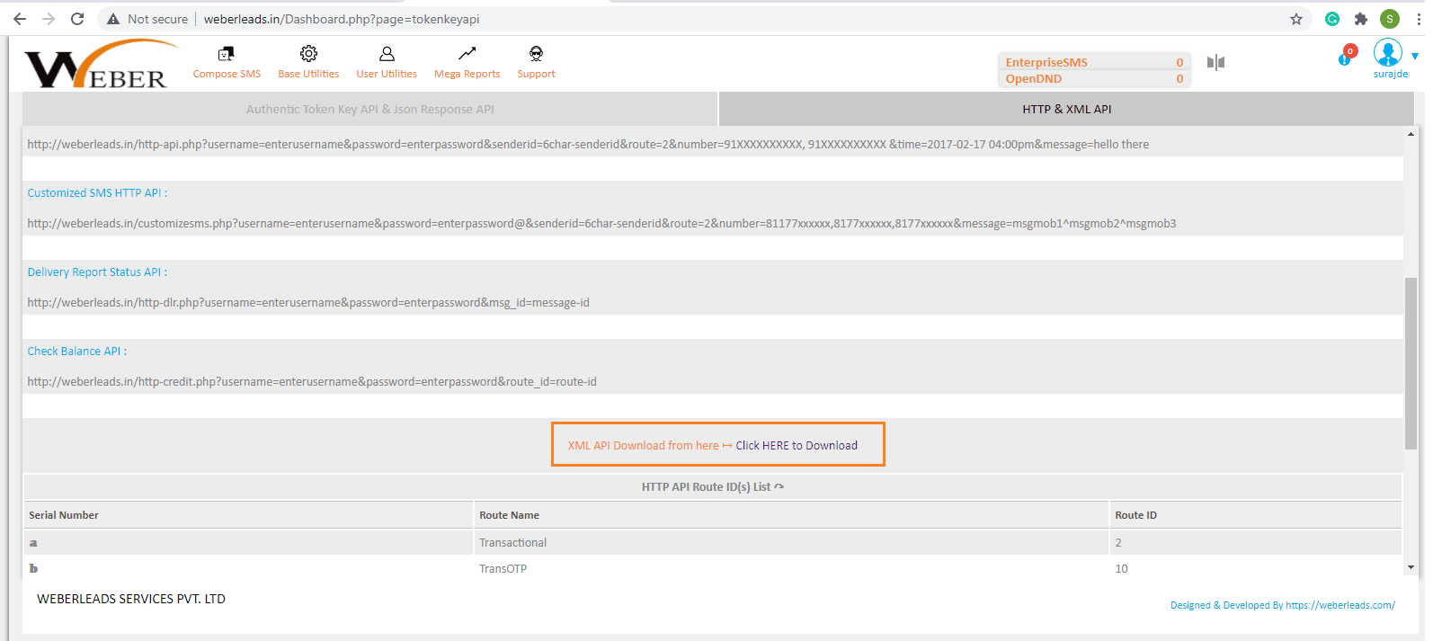 In this section, you can select API according to your requirements and also get documentation of XML API configuration