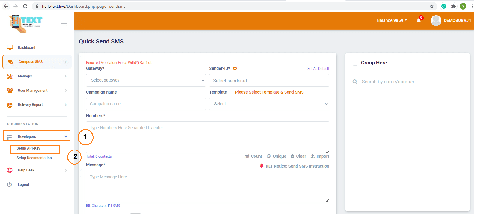 and put your Sender ID which is approved on DLT platform then put SMS content.