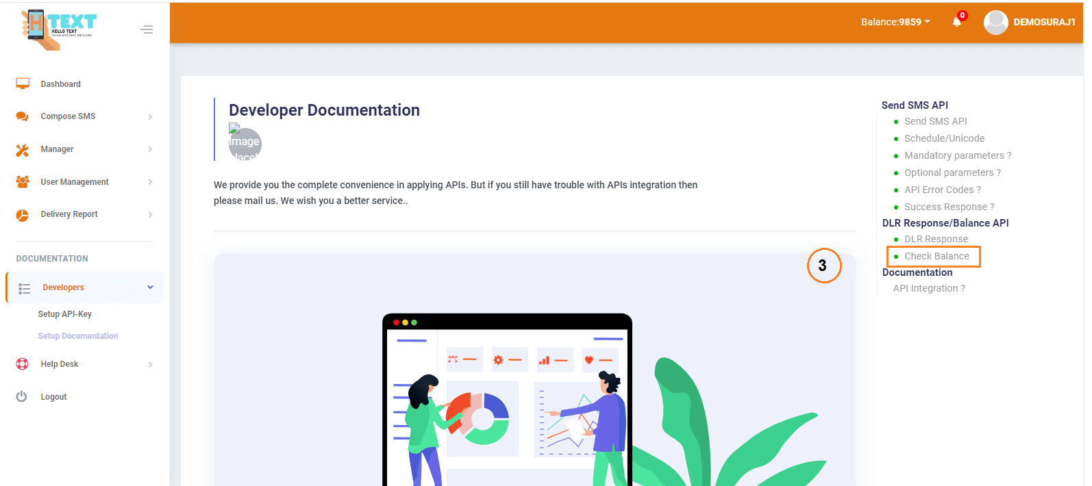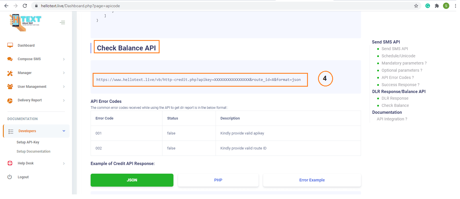 6. You will get the response in json format {"status": "success", "code":"003", "balance":"9859"}