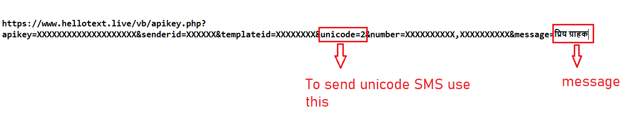 After Puting API-Key on Notepad you have to put All Mandatory Parameters Like API-Key, sender ID, Templateid, unicode=2 mobile number AND message.